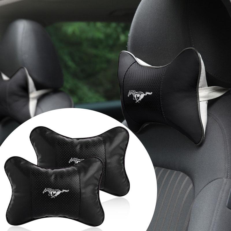 1/2Pcs Car Seat Headrest Auto Logo Neck Pillow Car Accessories For Ford Mustang F10 Zapatillas Miniatura Gt Shelby 2005 2015 Mujer 2012 Kuga