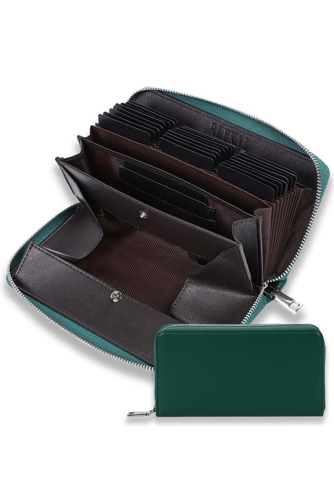 [Stores 26 cards] This long wallet is a subdued green that is not too flashy. The 8 columns x 3 card slots are arranged vertically to store cards. There is also space for two receipts. It is convenient to store a lot of cards.