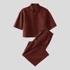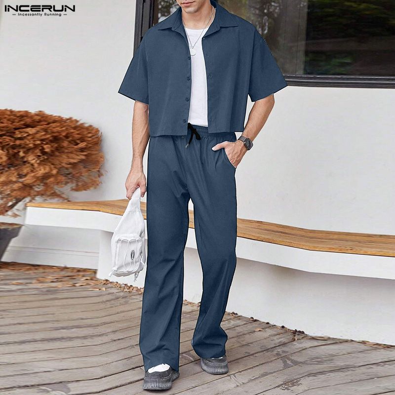 INCERUN Two Pieces Men Lapel Short Sleeve Cropped T-shirts Long Pants Sets Suits