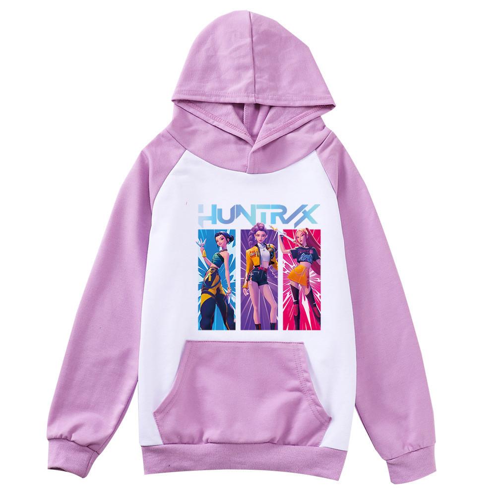 Kids Girls Anime Cartoon K-Pop Rumi Zoey Mira Printed Pocket Casual Long Sleeves Hoodies