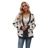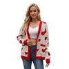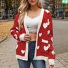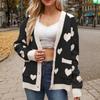 Women Autumn Winter Long Sleeve V Neck Love Heart Two Pocket Soft Breathable Loose Cardigan Sweater Coat