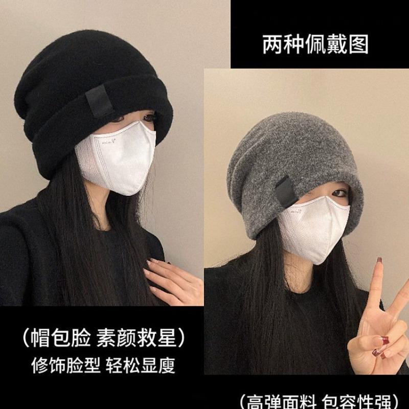 Hat Women's Winter Warm Wool Hat Big Head Circumference Loose Pile Cold Hat Show Face Small Ear Protector Knitted Hat
