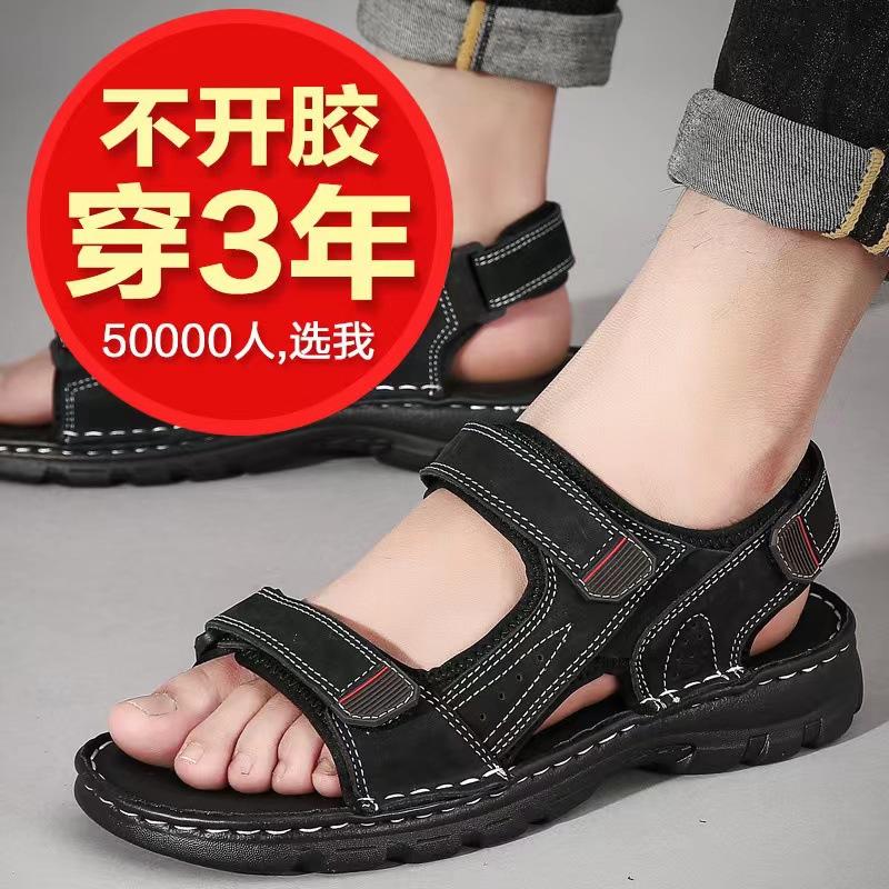 2025 New Summer Leather Sandals Men's Trend Cool Slippers Casual Sports Beach Shoes Cowhide Outdoor Large Size