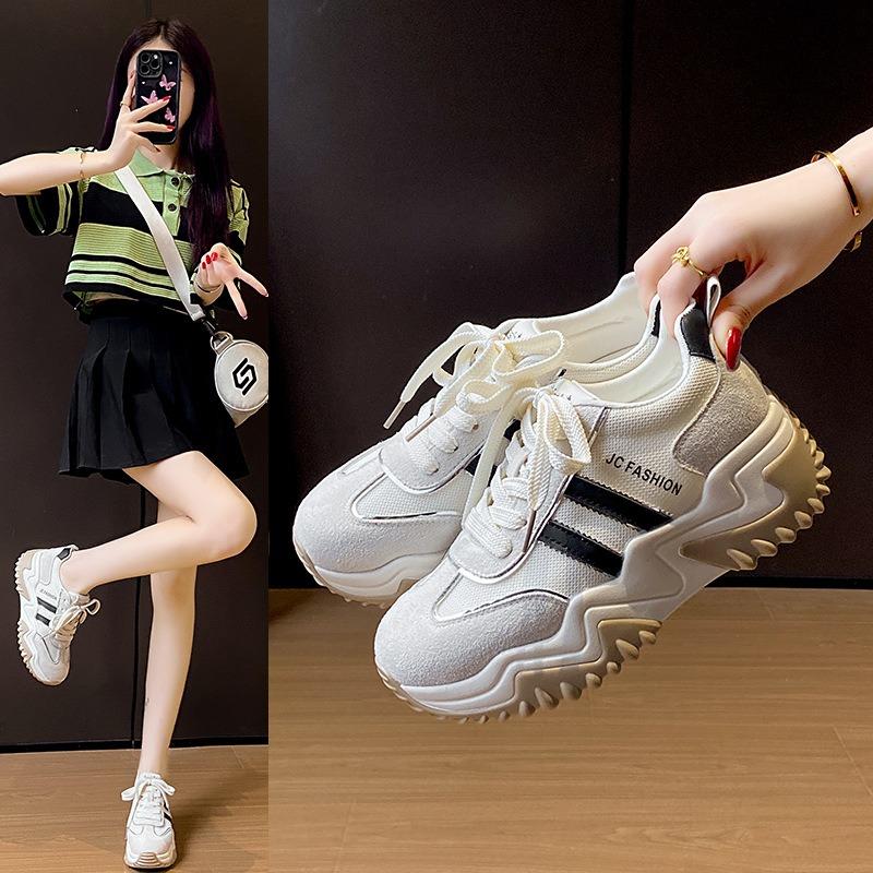 New Women's Chunky Casual Sneakers All-match Popular Women Breathable Platform Running Shoes Lace-up Round-toe Vulcanized Shoes