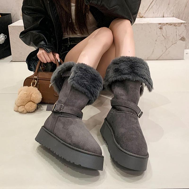 Tall Snow Boots Women's 2025 Winter New Versatile Thick-soled Non-slip Heightening Two Wear Piled and Thickened Warm Cotton Shoes