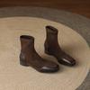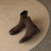 New Square Head Women's Large Size Martin Boots Solid Color Elastic Suede Low Heel Women's Boots Autumn and Winter Square Heel Medium Boots Women's