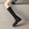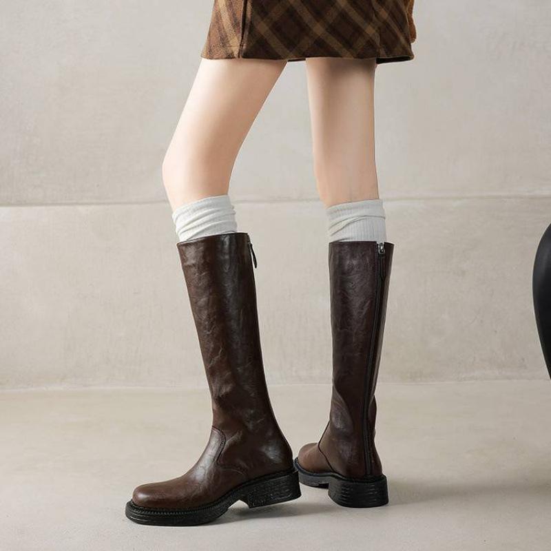 Autumn and Winter Solid Color Leather Large Size Women's Tall Boots Cowhide Middle Heel Comfortable Zipper Fashion Boots New Women's Boots