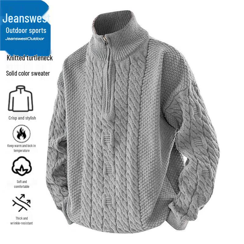 Jeanswest Men's High-Neck Solid Color Pullover Sweater