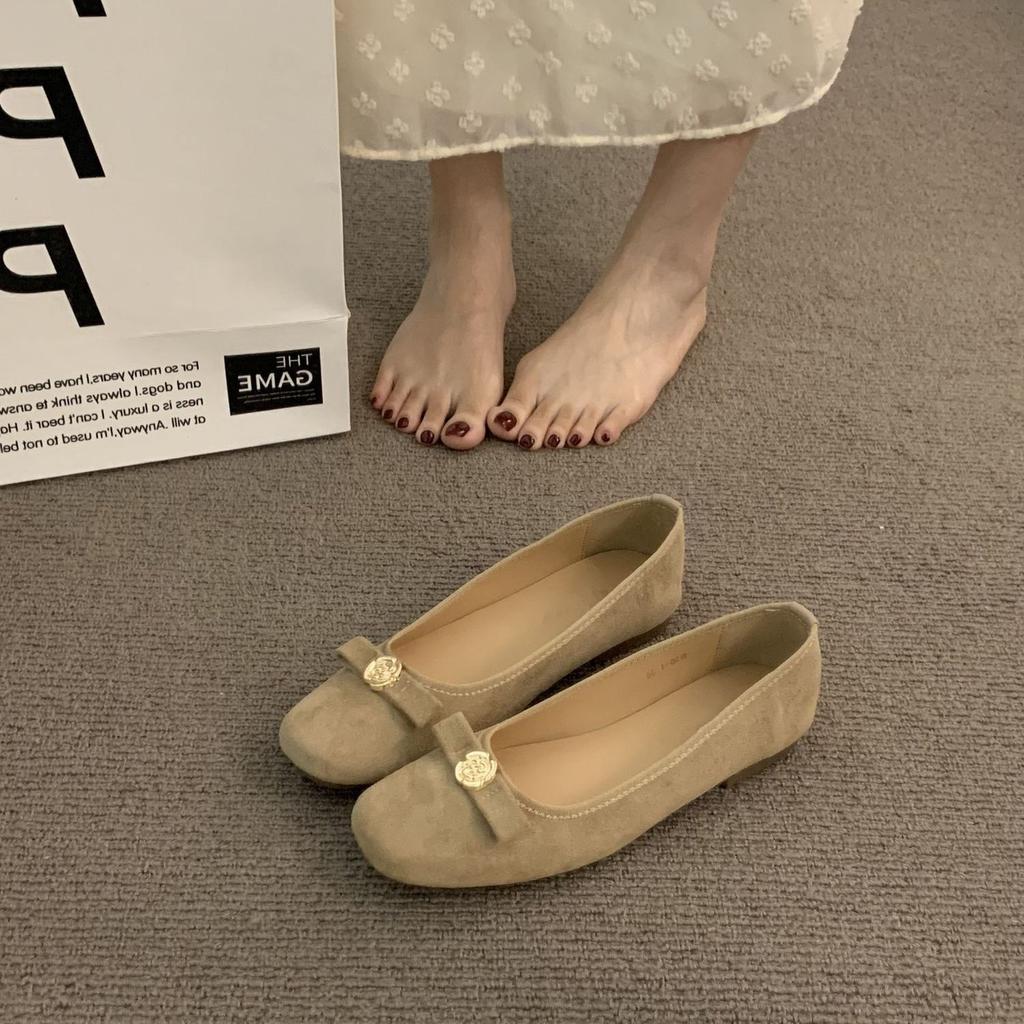 Xiaoxiangfeng French Suede Women's Sleeve Single Shoes Women's Shoes Gentle Fairy Evening Temperament Bow Beanie Shoes