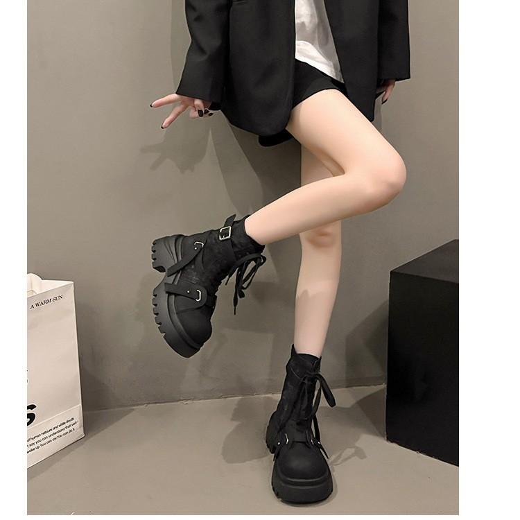 Black Retro British Style Heightened Thick-soled Martin Boots Women's 2025 New Autumn and Winter Thin and Comfortable Short Boots