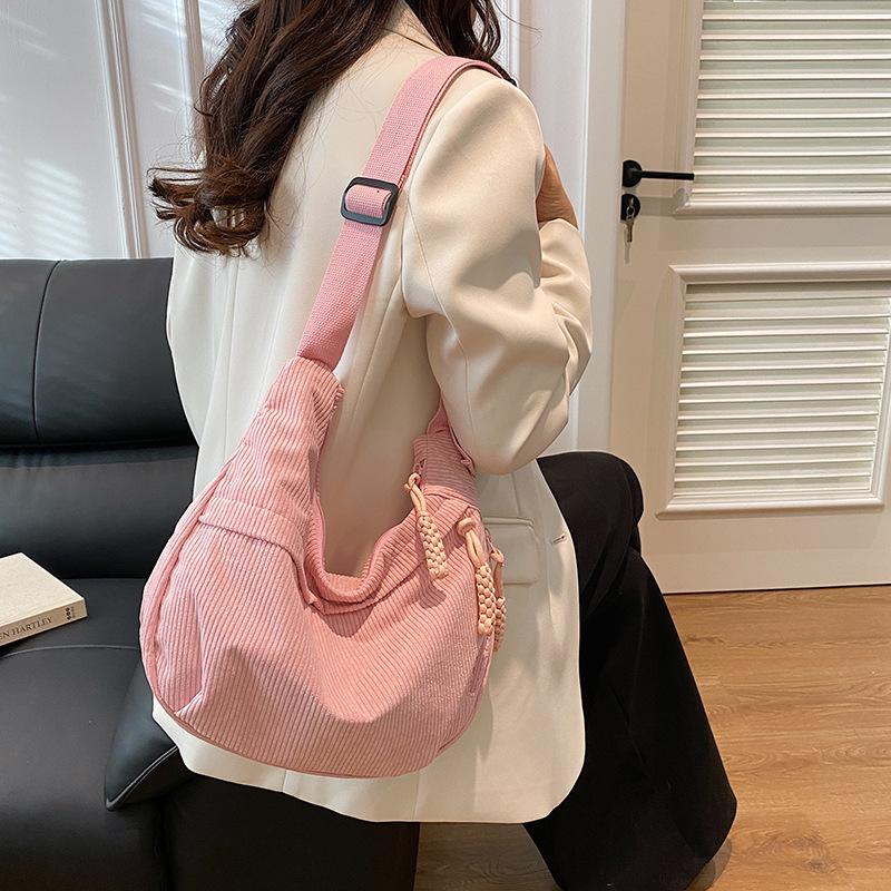Dumpling Bag Women's Corduroy Messenger Bag Large Capacity Shoulder Bag Casual Women's Bag Simple Versatile Sports Commuter Backpack