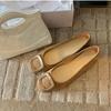 2025 Autumn New Temperament Round Head Square Buckle Shallow Mouth Suede Commuting Versatile Flat Sole Shoes Women's Spring and Autumn