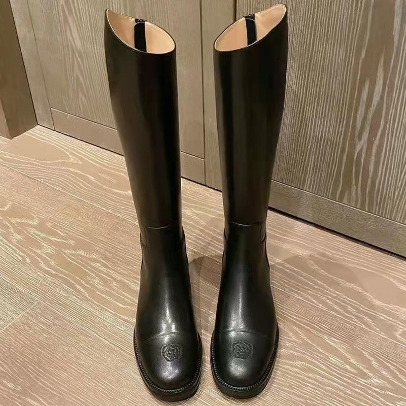 Internet Celebrity Knight Boots 2025 New British Style Women's Knee Boots Leather Boots High Autumn Boots Women's Single Boots