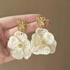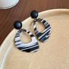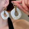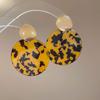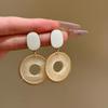 French Retro Silver Needle Round Flat Round Resin Fringed Earrings Light Luxury High-end Earrings Versatile Earrings