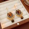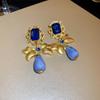 Silver Needle Diamond Teardrop Pendant Stud Earrings - Vintage Luxury Design