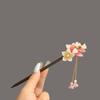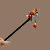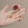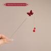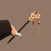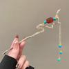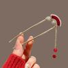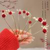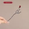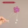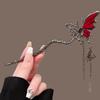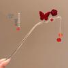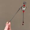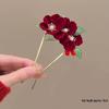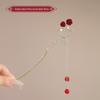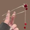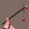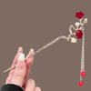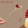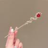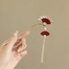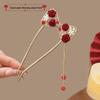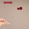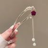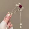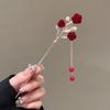 Elegant Red Rose Tassel Hairpin - U-shaped Hair Accessory for Women, Perfect for Updos and Traditional Attire.