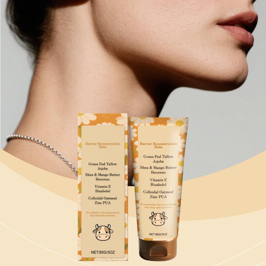 It adopts a "natural ingredient matrix" : grass-fed beef fat is rich in fatty acids similar to human sebum, which can deeply nourish and strengthen the barrier. Jojoba oil is skin-friendly and easily absorbed, regulating the water-oil balance. Shea butter and mango butter double lock in moisture, improving dryness and roughness; Beeswax forms a breathable protective film, permanently locking in nutrients and moisture. Vitamin E and bisabolol have antioxidant, anti-inflammatory and soothing effects. Colloidal oats and PCA zinc repair sensitivity and relieve redness. The entire process contains no synthetic additives or preservatives. It only provides pure nutrition to the skin, allowing even sensitive skin to enjoy it with peace of mind.