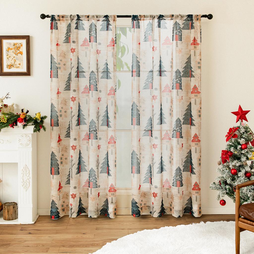 2PC Christmas Day Decoration Christmas Tree Translucent Curtains and Window Screens, Suitable for Living Room, Bedroom, Party, W