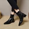 Soft Leather Thick Heel Short Boots Women's Pointed Middle Heel Thin Boots Velvet Women's Shoes Winter New Cotton Leather Shoes Martin Boots