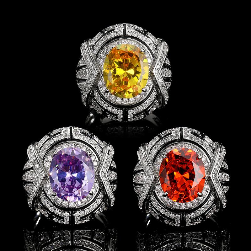 Jewelry Ring Full Diamond Inlaid Red Yellow Purple Diamond Color Treasure High Sense Light Luxury Women'S Jewelry