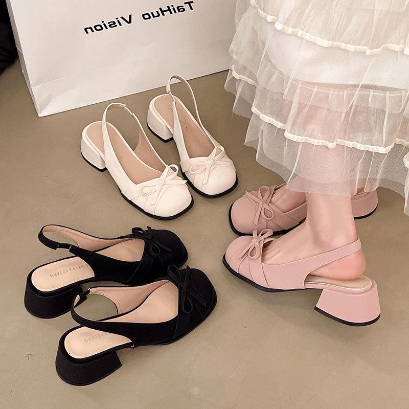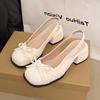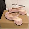 Fashion Pink Mary Jane Women's Shoes Thick Heel Summer New Bow Satin Bag Head Empty Sandals Women