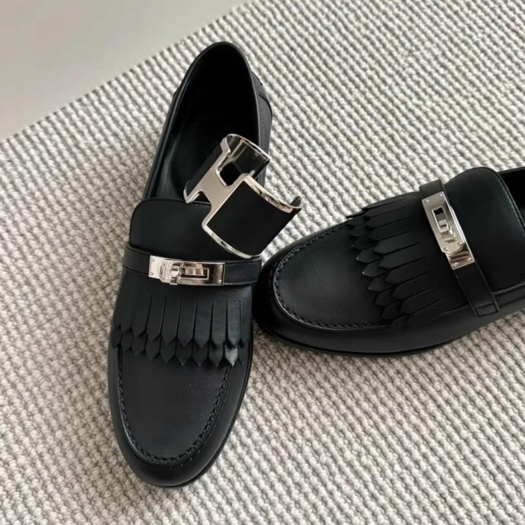 Small Gold Buckle Fringed Leather Female Lazy British Small Leather Shoes Flat Shoes Single Shoes
