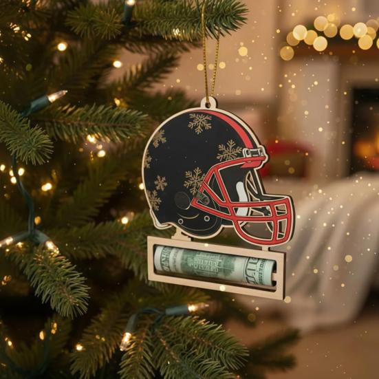 Wooden Money Holder Christmas Ornament Football Helmet Cash Gift Card Holder Sports Fan Gift for Men Players Coaches