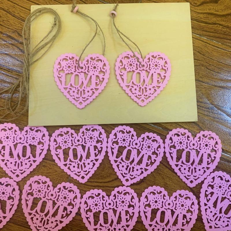 Mother's Day Pink Heart Wood Pendant Gift, Wooden Chip, Heart-shaped Wedding Pendant, Wooden Handicraft Decoration