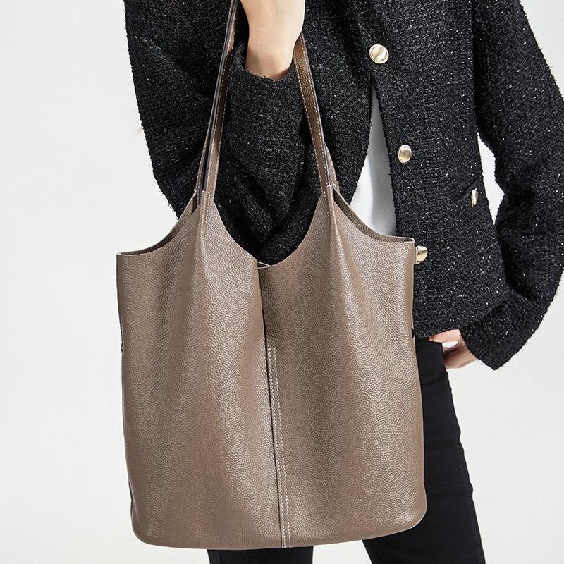 Leather Women's Bags, New Tote Bags, Large-capacity Women's Versatile Shoulder Bags, High-end Commuting Fashion Bucket Bags
