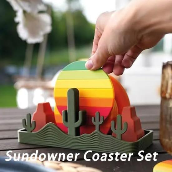 Desert Sunset Inspired Coaster Set: Embrace the charm of the desert and sunset with the Coaster Set, featuring a whimsical design that adds a touch of warmth to your gatherings.