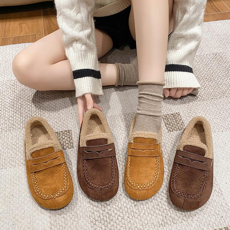 One-pedal Lazy Single Shoes 2025 Autumn and Winter New Fashionable Versatile Velvet Warm Cotton Shoes Soft-soled Doudou Shoes Women