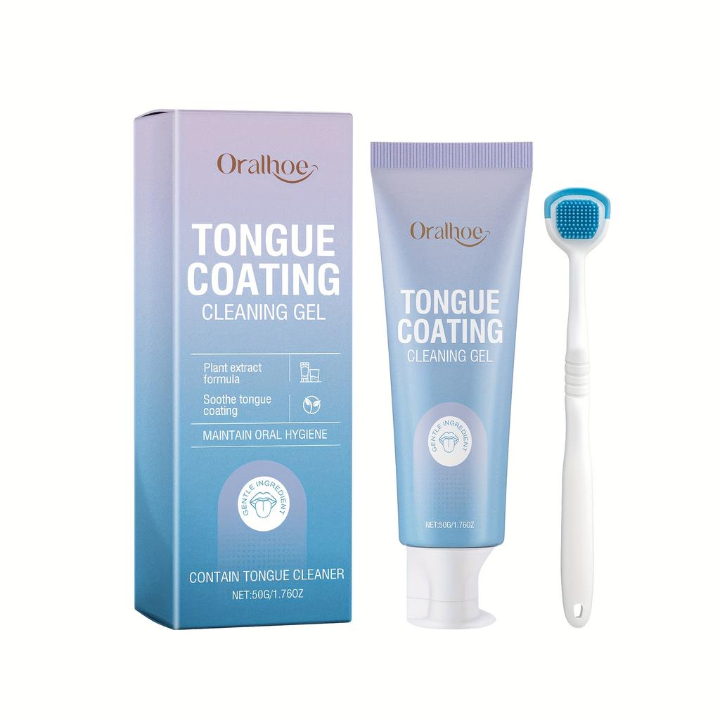 Tongue Cleaner for Remove Tongue Coating Inhibit Oral Bacteria Improve Bad Breath Freshener Tongue Cleansing Gel Toothbrush Set