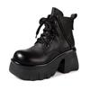 Women's Genuine Leather Martin Boots - Thick Sole, High Heel, Petite Height Boost, Versatile British Style for Autumn/Winter.