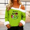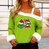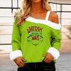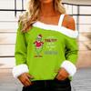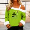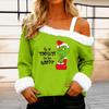 Women's Casual Fashion Sexy Off-Shoulder Collar Christmas Pattern Long Sleeve Crewneck T-Shirt Top