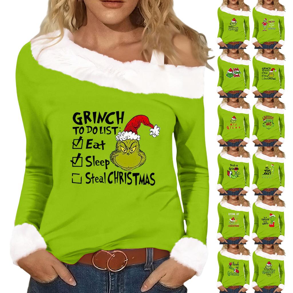 Women's Casual Fashion Sexy Off-Shoulder Collar Christmas Pattern Long Sleeve Crewneck T-Shirt Top Features: Material: Made of high quality material, and suitable for daily wear, made of soft fabric, polyester, light and comfortable, wardrobe , easy to dress up or take off, comfortable to wear all day. Occasion: This dress is perfect for everyday, outing, party, work, casual wear. It's so random you might some extra covers! This one is available in a variety of colors to suit your personal . It is the best choice for gift giving Wash with cold water, the size will not change much, if you have any questions when choosing, welcome to consult Different monitors will have a little color difference, please don't mind Product information: Gender:Women Sleeve Length:long sleeve Pattern Type:Pattern Occasion:Casual,Daily,Party,Beach Both hand wash and machine wash is OK Package include:1 PC Women's Top