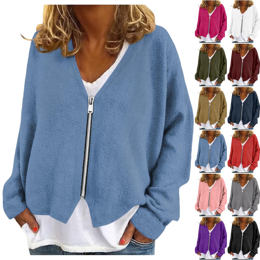 Womens Zip Up Sweaters Sweatshirts Long Sleeve Oversized Jackets Soft Casual Loose Tunic Tops