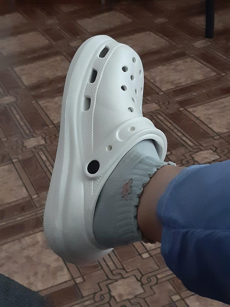The insole size 23.5 fit. Creases and dents are visible on the top.