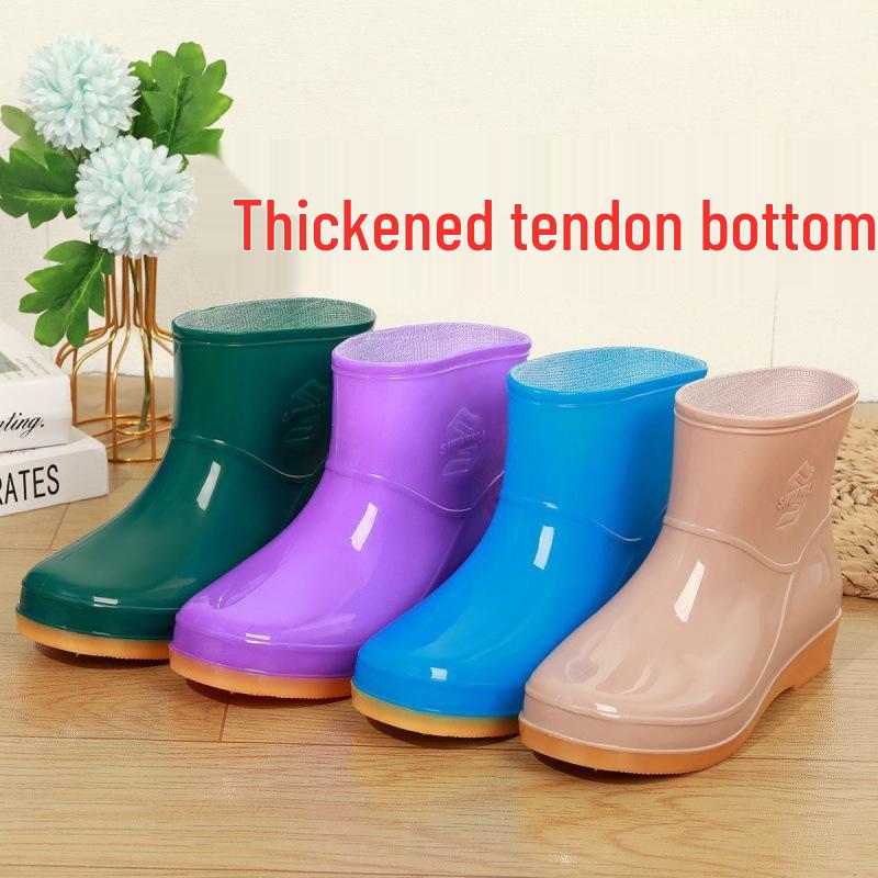 Women's Waterproof Non-Slip Short Rain Boots with Warm Cotton Lining