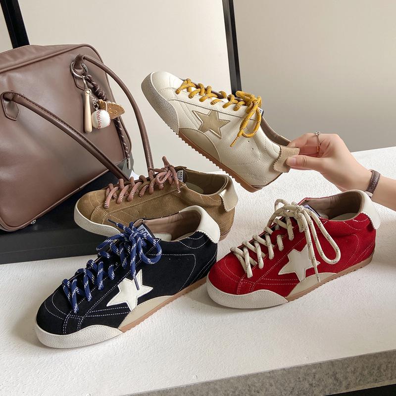 5CM Petite Height-Increasing Korean Color-Block Star White Retro Lace-Up Women's Casual Shoes