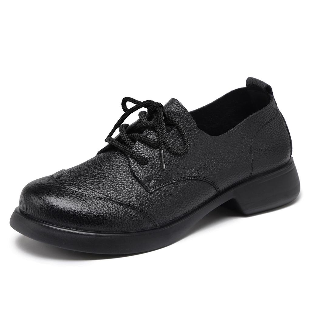 Women's Soft Sole Leather Chunky Heel Round Toe Lace-Up Shoes - Comfortable Plus Size for Autumn