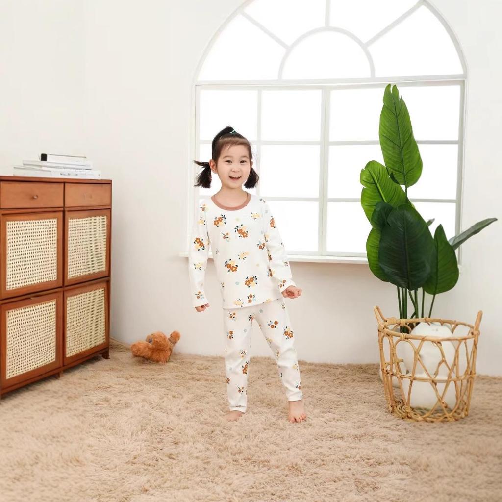 This cozy pajama set, crafted from soft and breathable cotton, features a charming floral design, perfect for autumn. The long johns provide warmth and comfort for cooler nights, while the underwear ensures a snug fit. Inspired by Korean style, this set combines elegance with practicality, making it an ideal addition to your little one's nightwear collection.