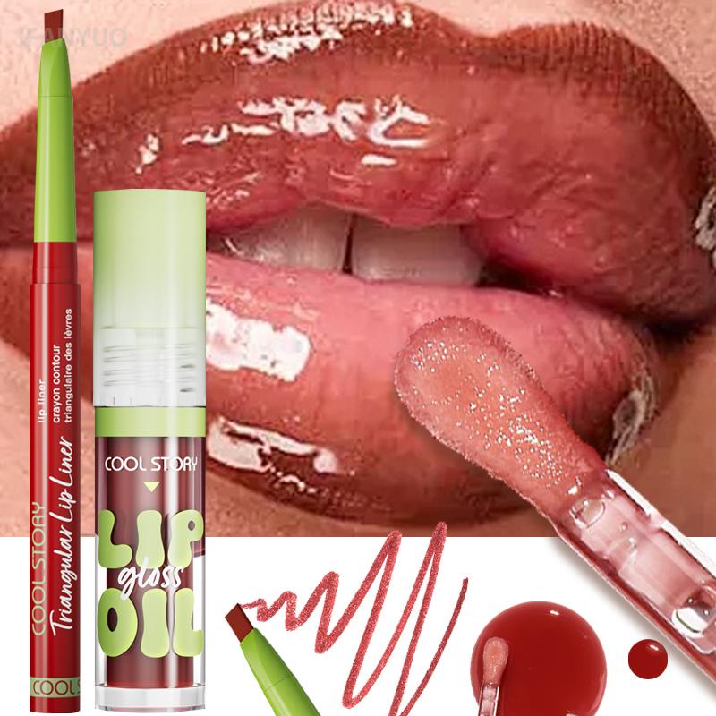 Hydrating Lipliner Lip Gloss Set Matte Lip Outline Contour Liner Nude Brown Plumping Moisturizing Lip Tint for All Skin Types