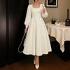 ZANZEA Women Elegant Square Collar Long Sleeve Casual Long Dress
