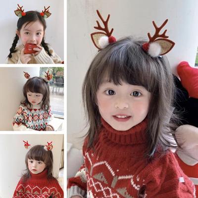 1 Pair Reindeer Antler Hair Clips for Christmas Fluffy Ear Headband with Pom Poms Festive Girls Hair Accessories Gift for Women Kids