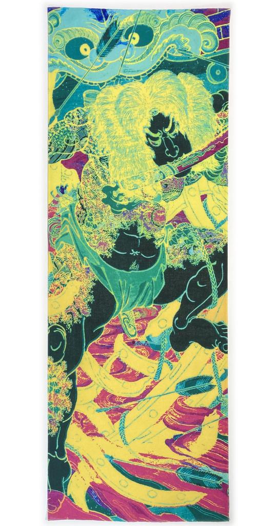 Hand Towel from the Popular Suikoden of the 108 by Utagawa Featuring a Crazy Ukiyo-e Series, "One Heroes," Kuniyoshi, Pattern.