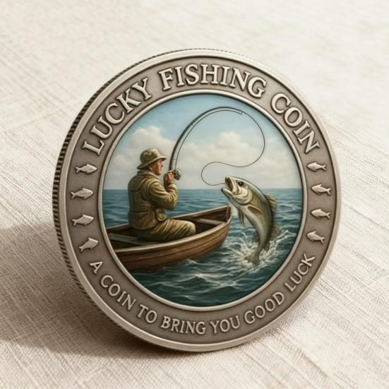1/2Pcs Lucky Fishing Coin Bring You Good Luck Fishing Token Metal Carving Souvenir Coin Badge Decoration Dad Fishermen Fishing Enthusiasts Gift