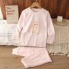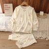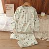 Introducing a charming and cozy sleepwear set designed to delight kids during the autumn season. These Korean-style pajamas offer a playful yet comfortable experience for both boys and girls. Crafted from a soft blend of cotton and lyocell, the material ensures breathability and a gentle touch on the skin. The set features adorable cartoon designs that add a fun and cheerful element to bedtime routines. Perfect for lounging at home, this pajama set is an ideal choice for keeping your little ones snug as the temperatures dip.