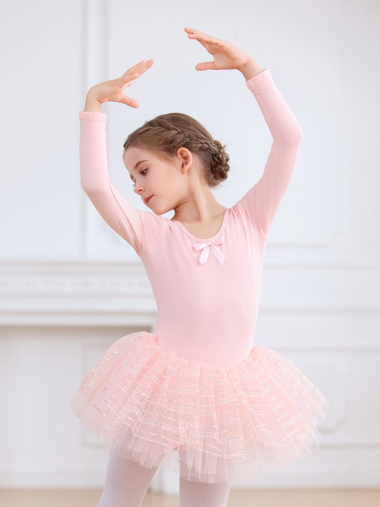 Discover elegance and comfort with this long sleeve tutu skirt dancewear, perfect for autumn and winter ballet and figure skating. Crafted from soft, breathable cotton material, this leotard ensures freedom of movement while providing warmth during cooler seasons. The delicate tutu skirt adds a touch of gracefulness, making it an ideal choice for young dancers who wish to twirl with effortless style. Ideal for practice sessions and performances alike, this dancewear combines functionality with a charming design to elevate any dance wardrobe.