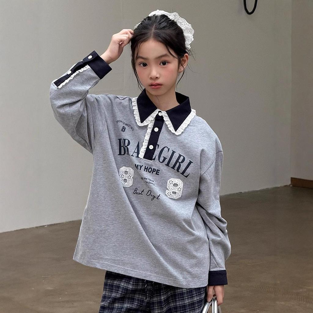 Introducing a delightful addition to your little one's wardrobe from the Autumn 2025 Collection. This girls' long sleeve polo shirt is crafted from soft, high-quality cotton, ensuring both comfort and durability for everyday wear. The elegant heather grey color adds a touch of sophistication, while the charming lace collar provides a delicate and stylish accent. Perfect for pairing with skirts, jeans, or trousers, this versatile piece is ideal for school days or casual outings.