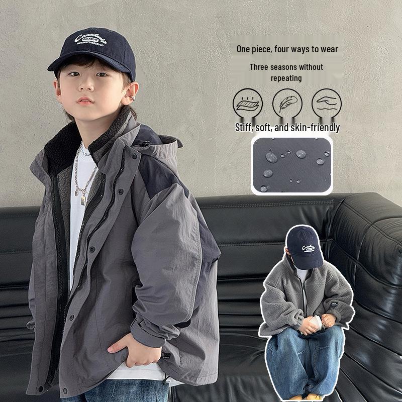 This versatile jacket is perfect for boys during the autumn and winter months. Designed with long sleeves and crafted from high-quality cotton material, it ensures both comfort and warmth. The fleece lining provides additional insulation against the cold, while the waterproof exterior keeps your child dry in wet weather. As a 3-in-1 jacket, it offers flexibility for different weather conditions, making it an essential addition to any wardrobe. Ideal for outdoor adventures or everyday wear, this jacket combines functionality with style to keep your child cozy and protected.